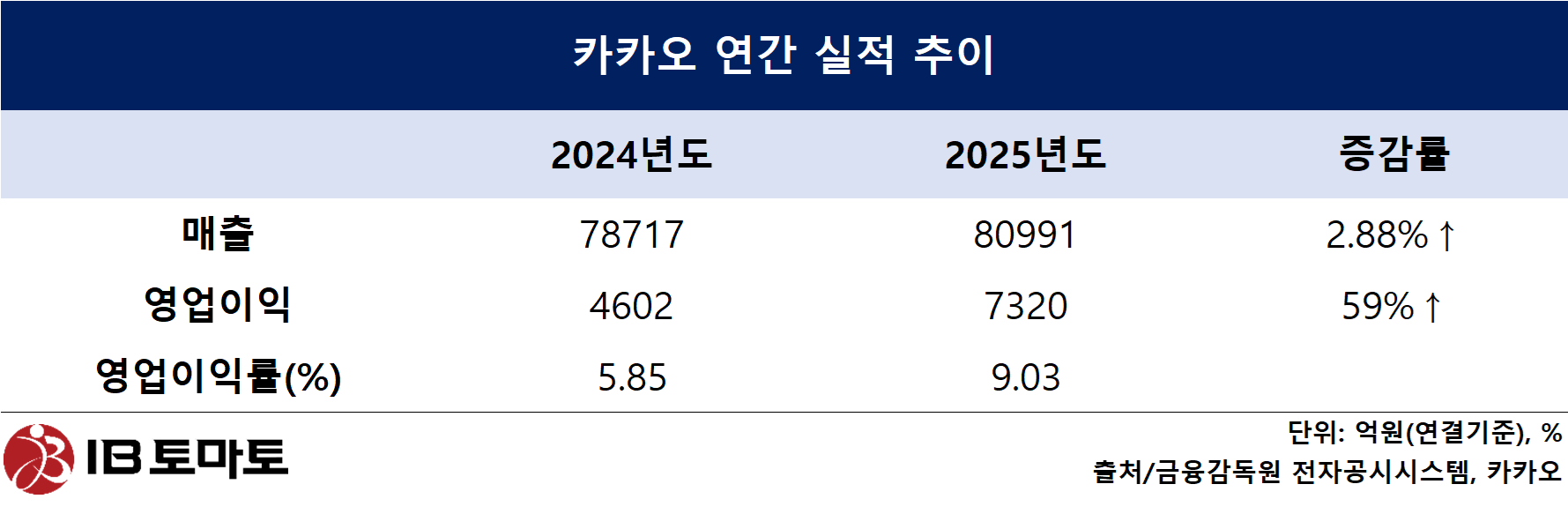 카카오 측은 <IB토마토>에 "카카오는 그동안 응축한 에너지를 바탕으로 핵심 사업인 AI와 카카오톡을 중심으로 실적 개선을 이끌 것"이라며 "그룹 역량을 핵심에 집중해온 구조 개선의 성과가 나타나는 만큼 성과를 입증하는 동시에 카카오의 중장기 성장에 대한 기대에 부응할 것"이라고 설명했다.